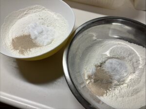 小麦粉と強力粉からしっかり捏ねて…💪