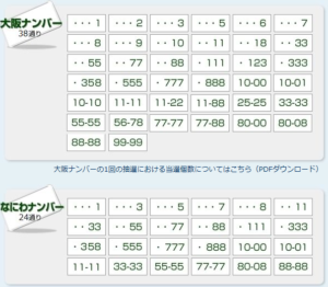 大阪ではこんな感じのナンバーが抽選ナンバーとなっています!