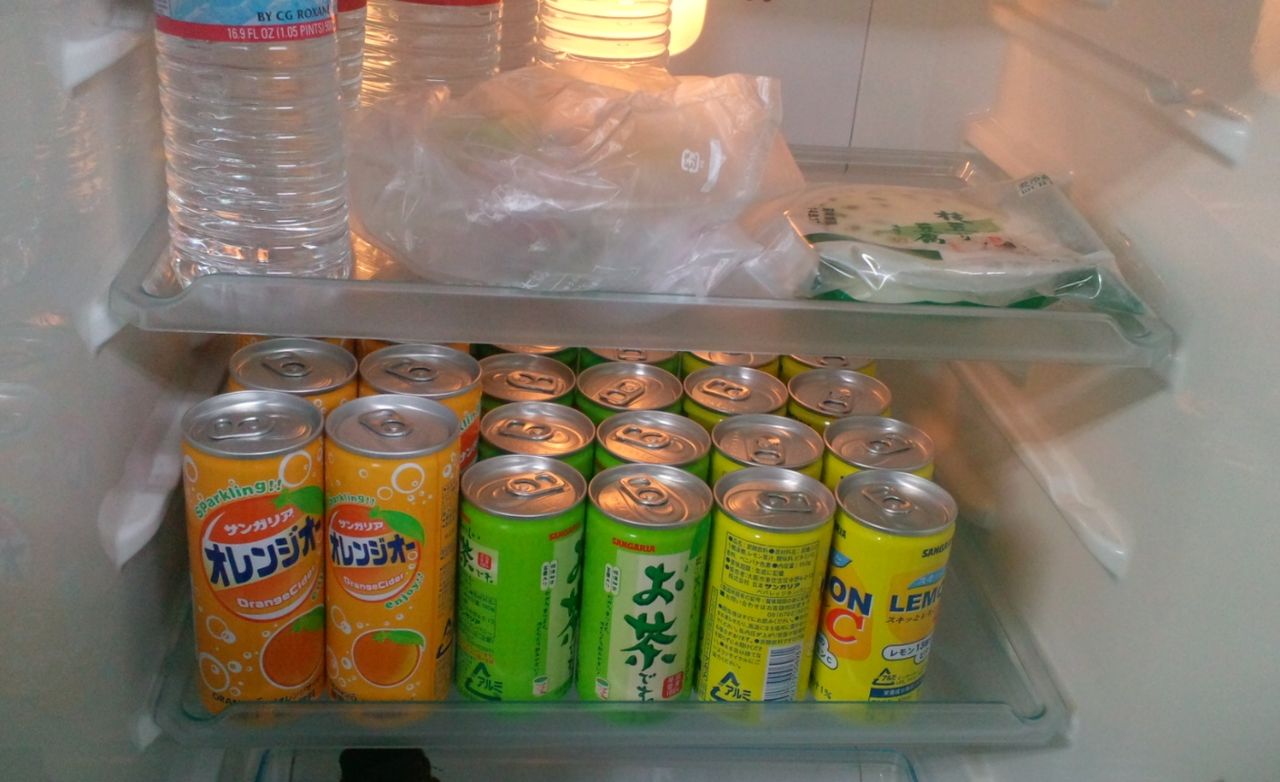 (家化している冷蔵庫・・・上段には枝豆豆腐とフルーツが鎮座しております)