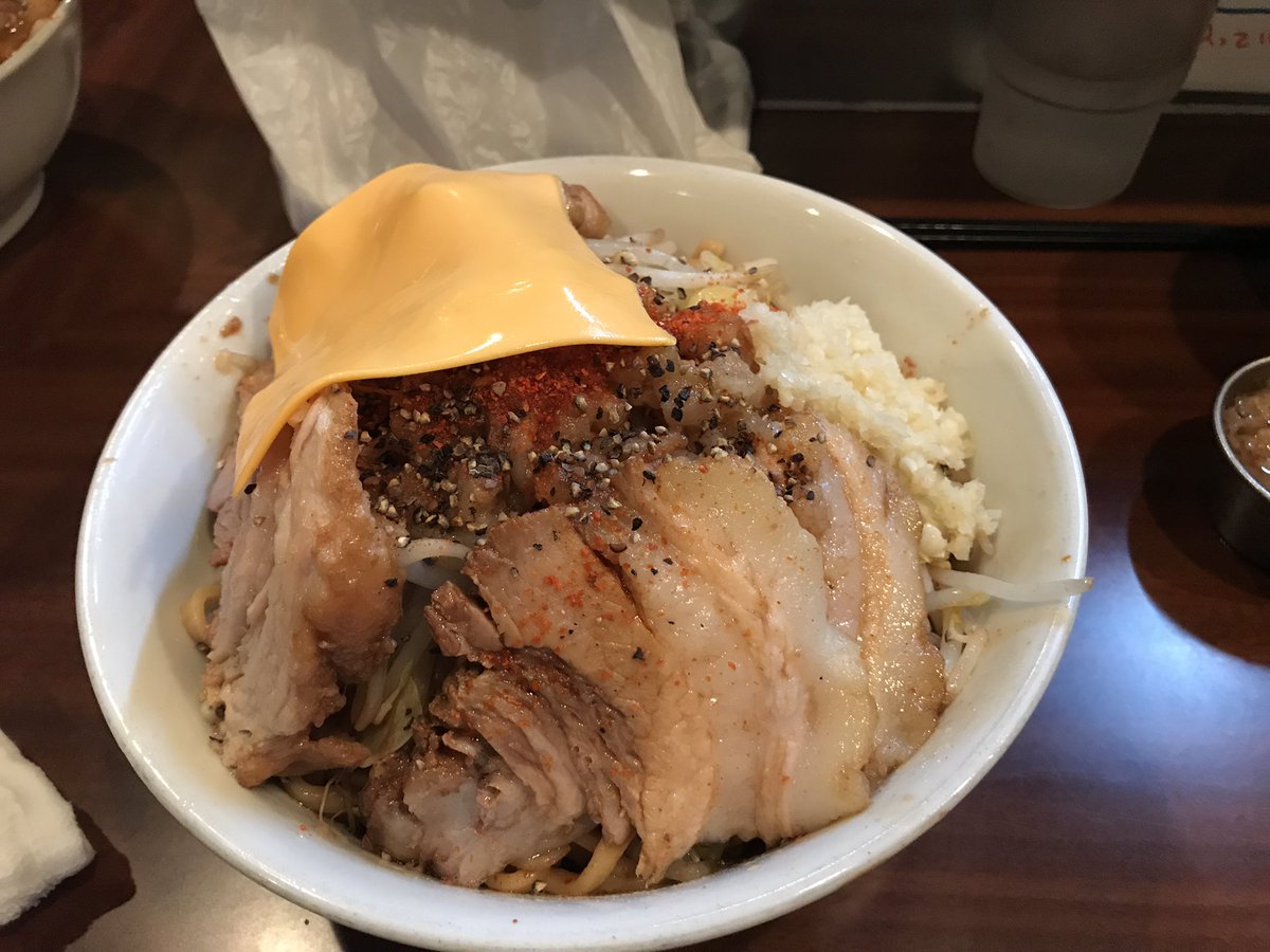 山本は汁なしニンニク野菜マシチーズトッピングでいただくのが大好きです。